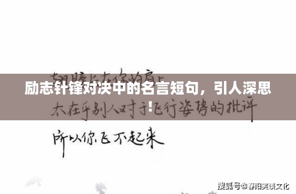 在人生的道路上,我们常常面临各种挑战和竞争,就如同针锋对决一般,这时,一些励志语录短句能够给我们带来力量,鼓舞我们前行,以下是一些在针锋对决中的励志语录短句,希望能够激励你在人生的舞台上勇敢拼搏。