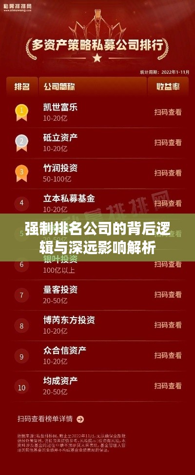 强制排名公司作为一种特殊的市场策略,虽然可以在短时间内提升公司的知名度和影响力,但长期来看,其效果并不持久,企业应通过创新和提升产品质量来争取市场份额和消费者关注,政府和相关机构也应加强对市场的监管力度,防止公司通过不正当手段提升排名,只有这样,才能维护市场的公平竞争环境,促进市场的健康发展。