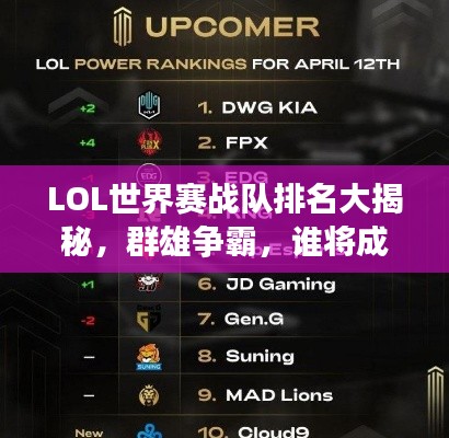 随着电子竞技的飞速发展,大型多人在线战斗竞技游戏《英雄联盟》(LOL)已经成为全球最受欢迎的电子竞技项目之一,作为全球最高水平的赛事之一,LOL世界赛吸引了众多顶尖战队的参与和全球玩家的关注,本文将为您带来世界赛战队排名LOL的相关内容,一窥群雄逐鹿的盛况。