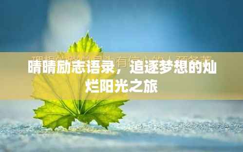 在这个纷繁复杂的世界里,每个人都在为了自己的梦想而奋斗,晴晴励志语录,正是为那些勇敢追求、不断努力的人们加油鼓劲的地方,这里,每一句话都充满正能量,让人心生希望,激发人们不断向前。
