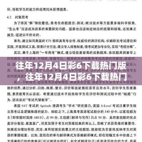 随着互联网的普及和数字娱乐的飞速发展,每年的彩6下载热门版总是备受关注,特别是在往年12月4日这一特殊时间点,彩6下载的热潮更是达到了一个新的高度,本文旨在探讨这一现象背后的利弊,以及我个人对此的看法和理由。