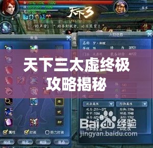 《天下三太虚》是一款热门的角色扮演游戏,玩家可以在游戏中体验到丰富的剧情、刺激的战斗和独特的玩法,本攻略旨在帮助玩家更好地了解游戏,掌握最新游戏动态,提升游戏体验。