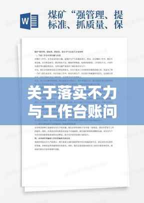 在当今社会,工作效率和执行力成为评价一个团队或个体能力的重要指标之一,在实际工作中,我们时常会遇到一些问题,如落实不力等,这其中,“工作台账”作为记录工作过程和成果的重要工具,其有效性直接关系到工作的落实效果,本文将探讨落实不力与工作台账之间的关系,并提出一些改进措施。