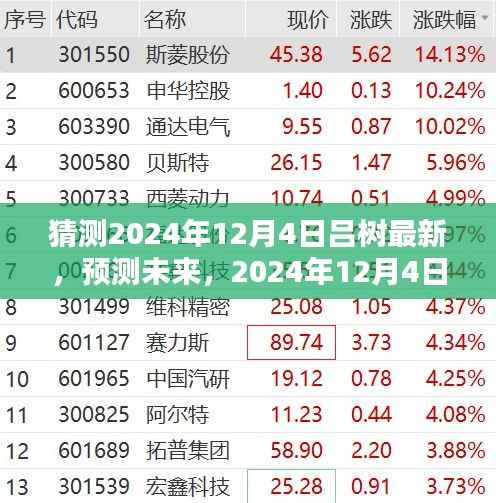 当我们谈论到2024年12月4日吕树的最新创作时,我们不禁对这部作品充满期待,我们期待这部作品能够继续展现吕树的创作才华和独特的风格,我们也期待这部作品能够涉及更多的社会热点话题和对未来的想象,我们期待这部作品的故事情节更加扣人心弦,人物形象更加立体鲜活,至于具体的情节和细节,我们只能拭目以待,等待吕树的最新作品为我们揭晓答案。