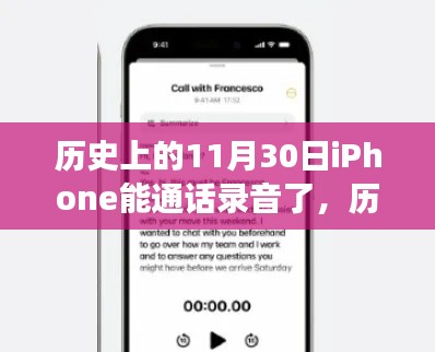 回望科技发展的历程,我们会发现,每一次技术的飞跃都深刻地影响着我们的生活,就在历史上的某个11月30日,iPhone迎来了一个重大的更新——通话录音功能的诞生,这一功能不仅改变了我们记录生活的方式,更在某种程度上改变了我们的沟通习惯,让我们一起走进那个充满创新与变革的日子,探寻这一功能背后的故事。