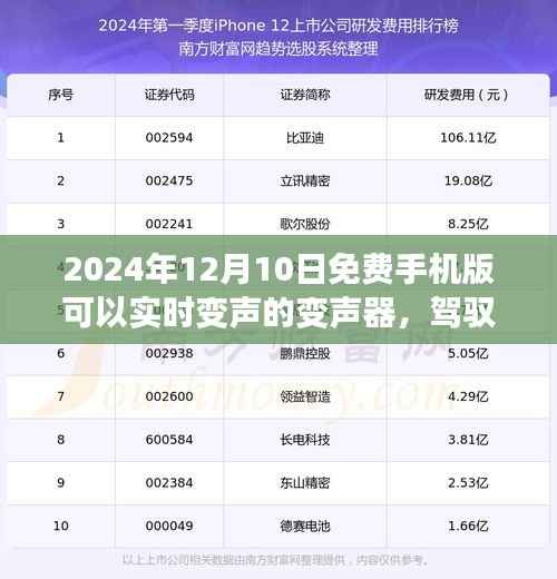 在充满创新与变革的时代浪潮中,我们即将迎来一个激动人心的时刻——2024年12月10日,免费手机版实时变声器正式问世,它将为我们带来声音的新纪元,这不仅是一项技术的飞跃,更是我们内心自信与成就感的一次大爆发,让我们一起探讨如何通过学习和拥抱变化,让这股正能量和幽默感融入我们的生活。