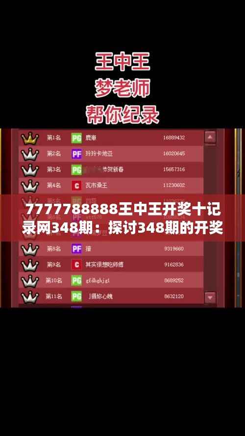 随着澳门特别行政区赌博业的繁荣与发展,彩票市场也呈现出蓬勃生机,在众多彩票网站中,“7777788888王中王开奖十记录网”因其公正、透明而备受关注,尤其是其第348期的开奖活动,更是吸引了众多投资者的目光,本文将深入探讨“7777788888王中王开奖十记录网348期”的开奖机制与公信力,旨在解析其公平性、透明度及其公信力建设,为长期参与彩票市场的投资者提供有价值的参考。