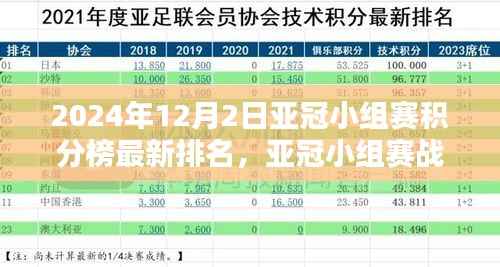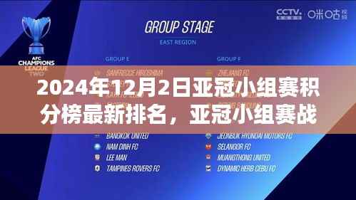 亚冠小组赛是一场足球盛宴,各支球队为了荣誉和梦想展开激烈角逐,本文为大家带来了关于2024年12月2日亚冠小组赛积分榜最新排名的分析,让我们一起见证了这场足球盛宴的激情与荣耀,让我们继续关注亚冠赛场上的精彩比赛和出色表现,为足球加油,为荣耀喝彩!