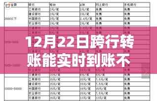 尊敬的读者朋友们,随着金融科技的飞速发展,跨行转账已成为我们日常生活中不可或缺的一部分,特别是在年终岁末的繁忙时段,如12月22日这样的日子,许多人都会关心跨行转账能否实时到账的问题,本文将围绕这一主题,为大家进行详细的科普和解答。