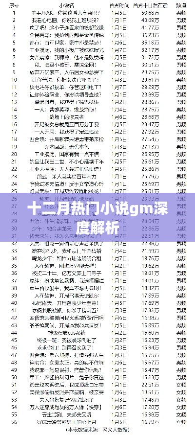 《十二月热门小说gm》是一部优秀的文学作品,值得我们深入解析和探讨,希望本文能够为大家提供一个全面的了解,让大家更好地欣赏这部佳作。