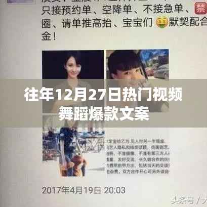 随着网络的发展与普及,视频舞蹈已成为大众娱乐生活的重要组成部分,每年的12月27日,总有一些独特的视频舞蹈在各大平台走红,吸引无数网友关注与热议,本文将围绕往年12月27日热门视频舞蹈爆款文案进行探讨,带您领略那些令人难以忘怀的舞蹈瞬间。